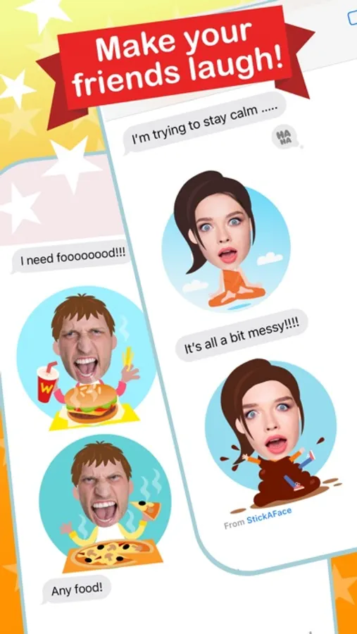 Customize and send funny iMessage stickers! Stick your face into hilarious cartoon characters, send personalized emojis & make your friends laugh. You're the star, and so are your friends and family. Quick and easy to use, save, edit, and use again.