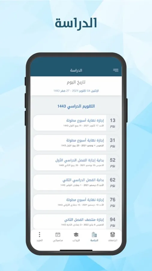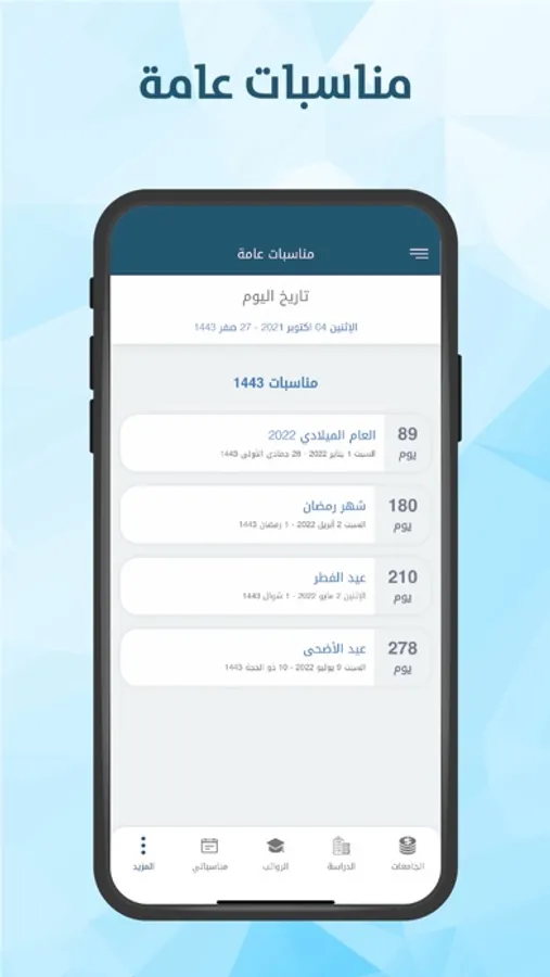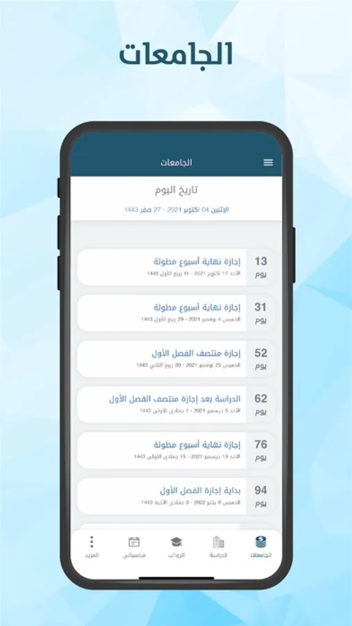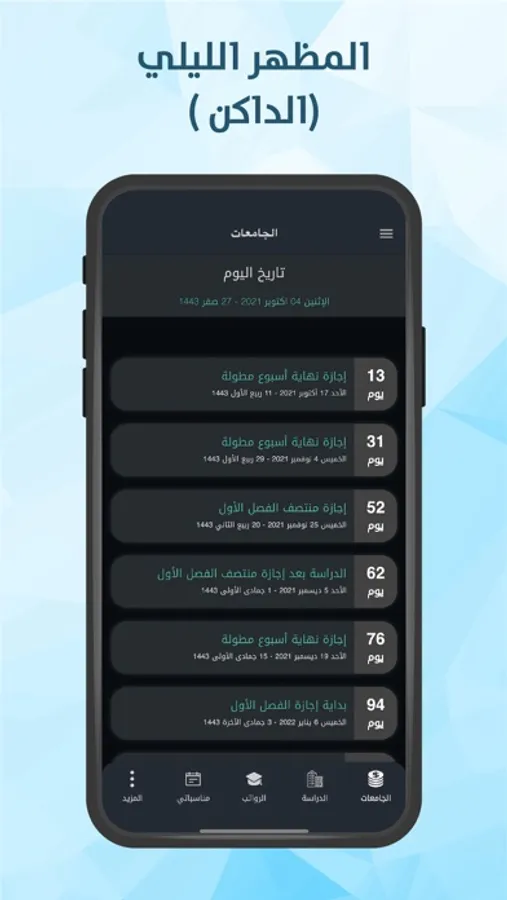 عداد تنازلي لتاريخ الإجازات والاختبارات