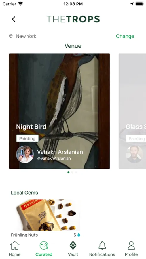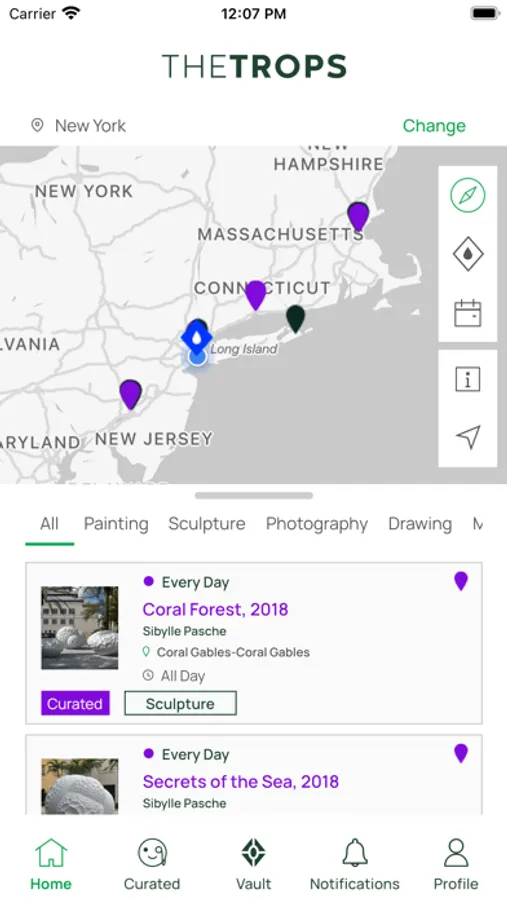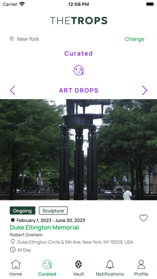 The Trops mobile application exhibits a variety of art experiences. Curated shows and events are presented in collaboration with the cultural community.