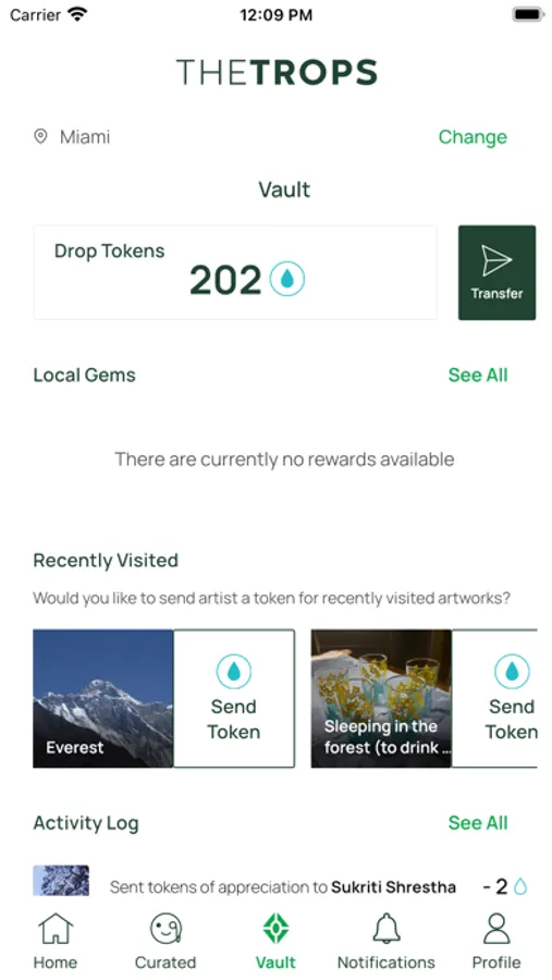 Like a treasure hunt, explorers visit mapped locations to find art placements within a neighborhood (“art drops”). Upon arrival, the user accesses more details about the art, collects achievement tokens, and archives the information for future reference and reflection.