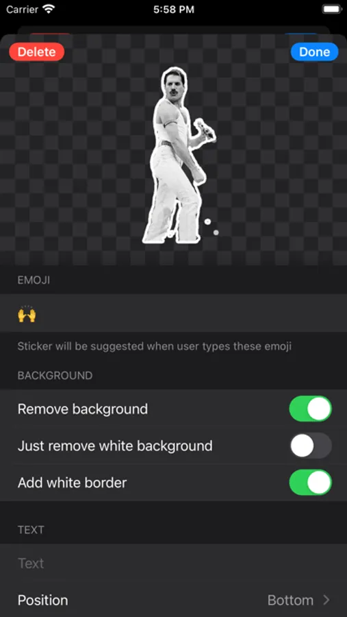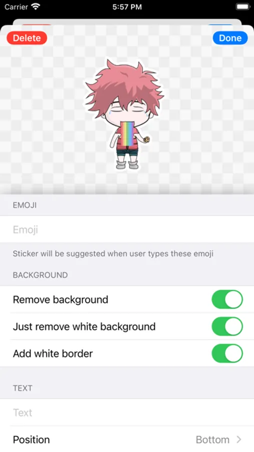 It supports removing backgrounds from images, adding text, and preparing your set before adding to Telegram.