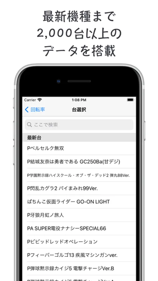 また、アプリ内には2,000台以上の台データが搭載され、最新機種がある場合はアプリ起動時に自動的に取得されます。
