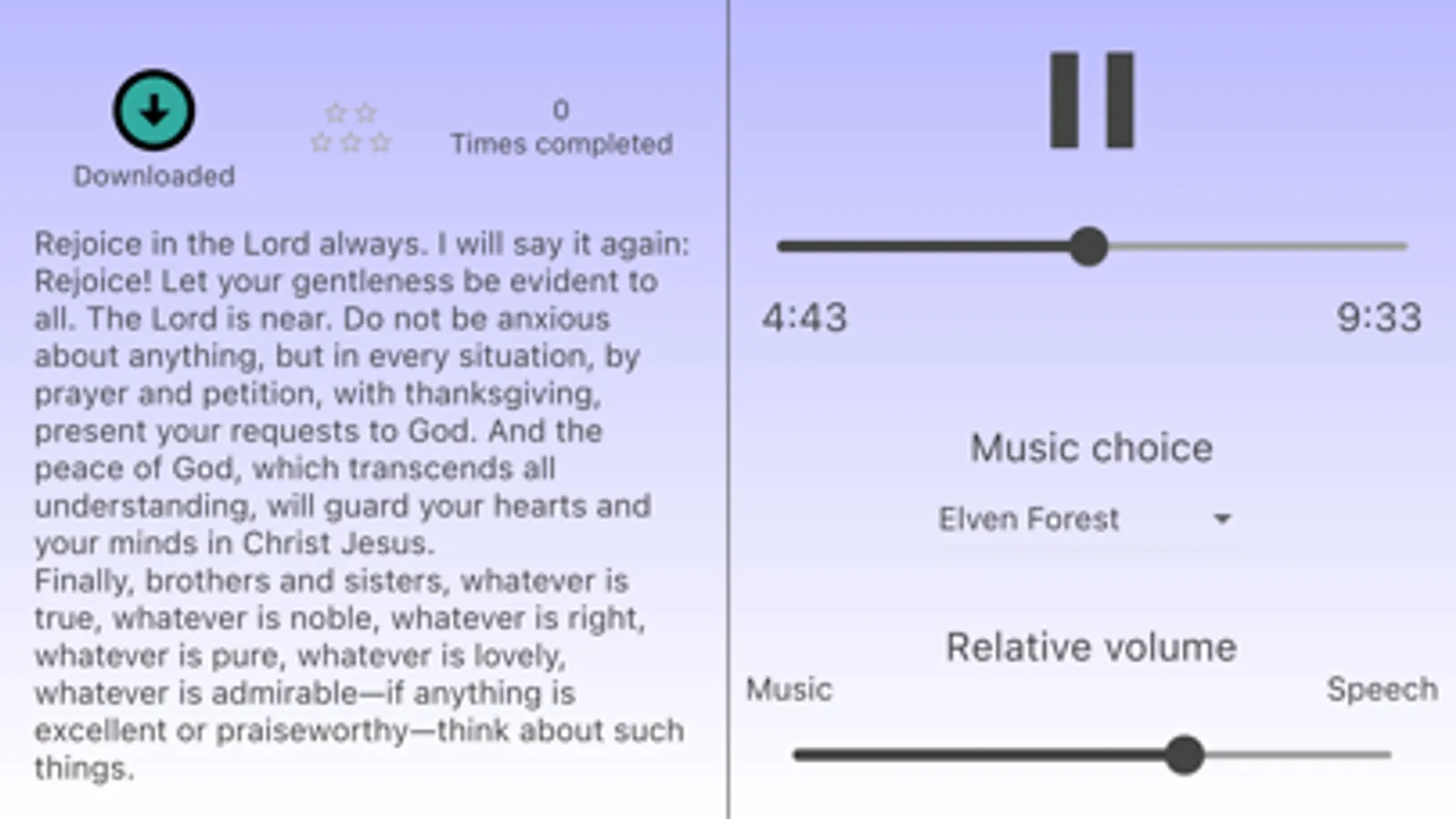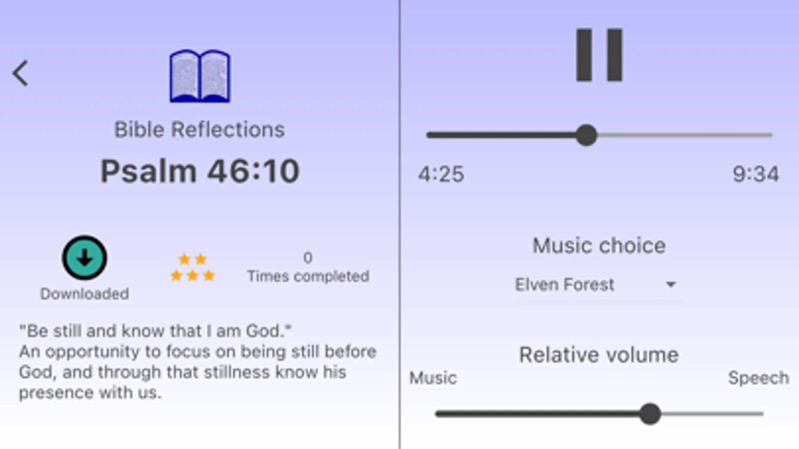 Mindfulness is an excellent way to learn relaxation and to reduce stress levels. This app contains reflections and meditations based on the Christian principles of biblical meditation and contemplative prayer. Each reflection is a guided audio describing a particular practice to follow. There are pieces of relaxing music that you add as background to the meditations.