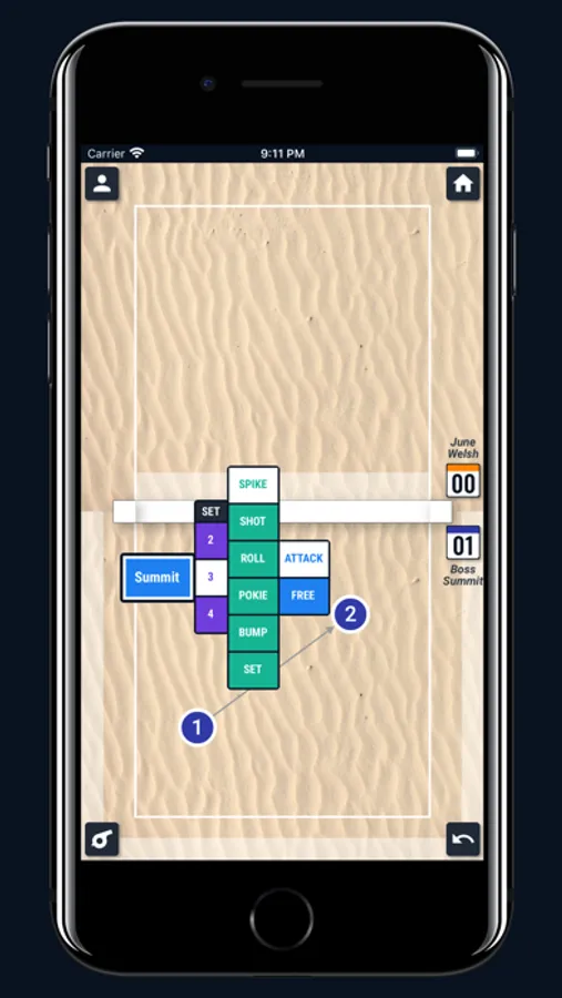 - Serve, pass, and set ratings (0-3 or 0-4)