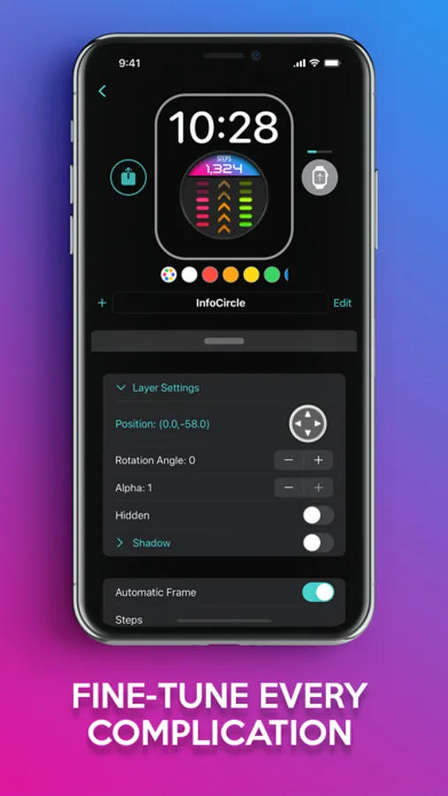 • Shape: Create shapes to overlay or fill areas of your complications using gradients and effects