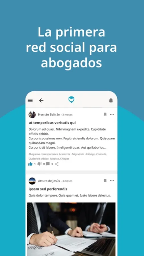 Bienvenidos a la mejor comunidad de abogados en México. La primera red social hecha por y para abogados. Donde podrás relacionarte con colegas de todo el país, compartir información, encontrar abogados corresponsales, y hasta conseguir clientes por medio de nuestro directorio y consultas online.