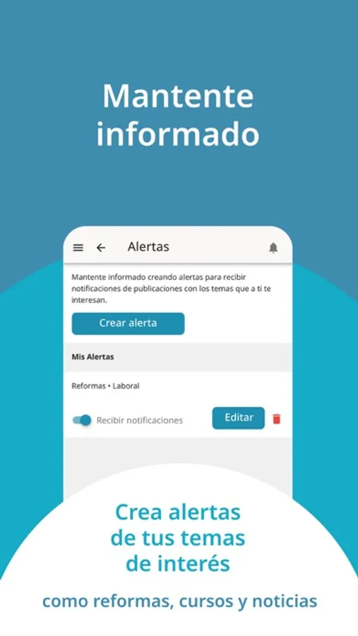 Mantente informado creando alertas, para que recibas notificaciones cada vez que se cree una publicación sobre los temas que a ti te interesan. Por ejemplo, reformas o noticias sobre determinada materia. Con lo cual, estarás siempre al día sobre los últimos acontecimientos en el mundo del derecho.