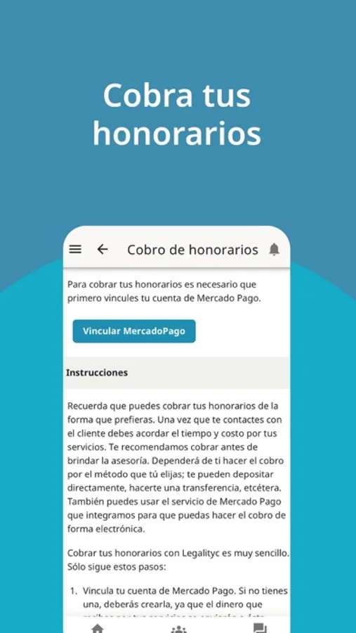 Opcionalmente, podrás realizar el cobro de tus honorarios de forma electrónica, y tu cliente podrá pagarte con tarjeta, transferencia, depósito o Paypal.