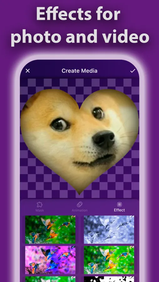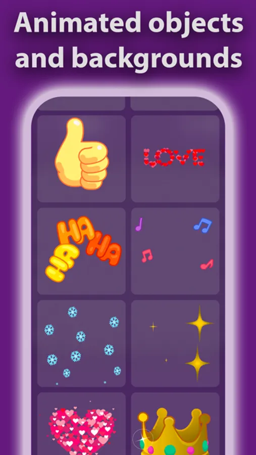 • Use ready-made animated objects and backgrounds. You can change the color, size, position, start and end time of the animation.
