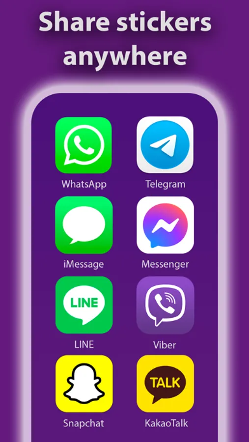 Share personalized stickers, memes, emojis and edited photos or videos in your favorite messengers: Facebook Messenger, Viber, Signal, Snapchat, Skype, VK, Line, KakaoTalk or any other app.