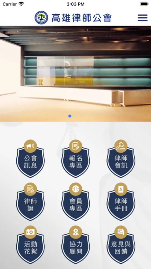 本應用程式提供社團法人高雄律師公會之關於公會、公會訊息等資訊予全體使用者。以及提供報名專區、服務專區、表單下載、會員專區等整合式服務予具有社團法人高雄律師公會會員身分之使用者。