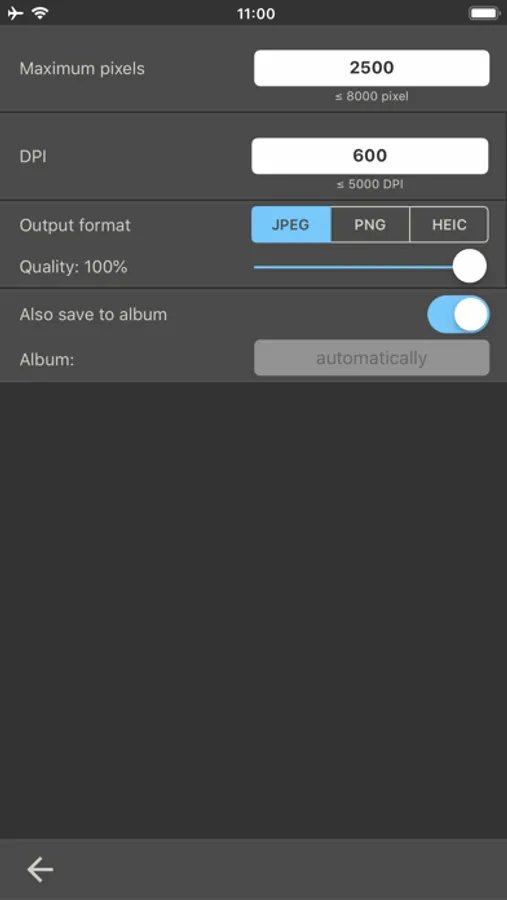 The app analyzes the PDF file and exports the image in the desired or best possible resolution, if the PDF document was designed in a lower resolution.