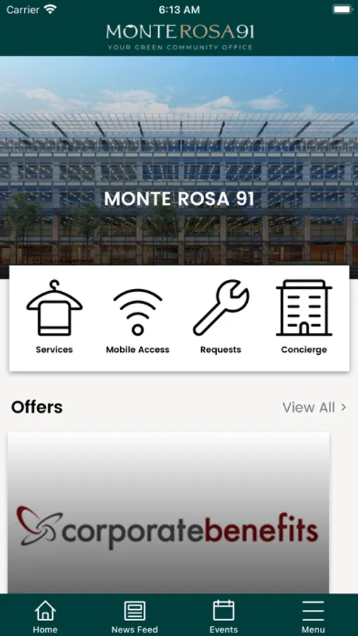 The Monte Rosa 91 application connects both employees and guests to the multifunctional complex which encompasses businesses, shops, food & beverage courts and a number of amenities.