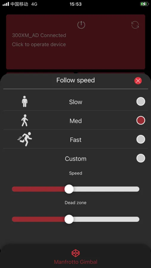 Manfrotto Gimbal 300XM App is developed for Manfrotto Gimbal MVG300XM designed for DSLR and mirrorless cameras. You can perform remote control, parameter configuration, firmware update and so on.