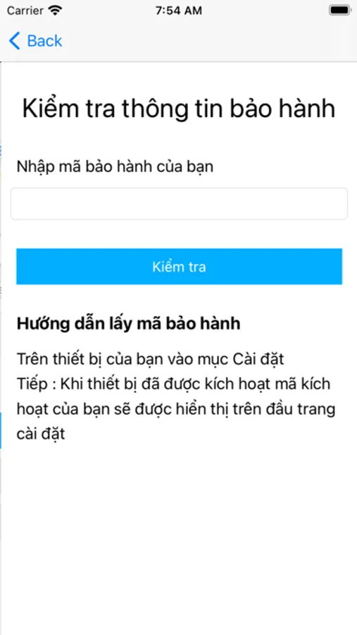 Kiểm tra thông tin Bảo hành của thiết bị màn hình