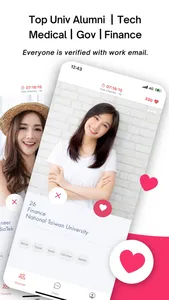 每位用戶均以本人校園/工作 email 驗證,我們相信「驗證」&「篩選」能讓忙於工作的你,更精準的找到背景和價值觀相近的那個他/她!