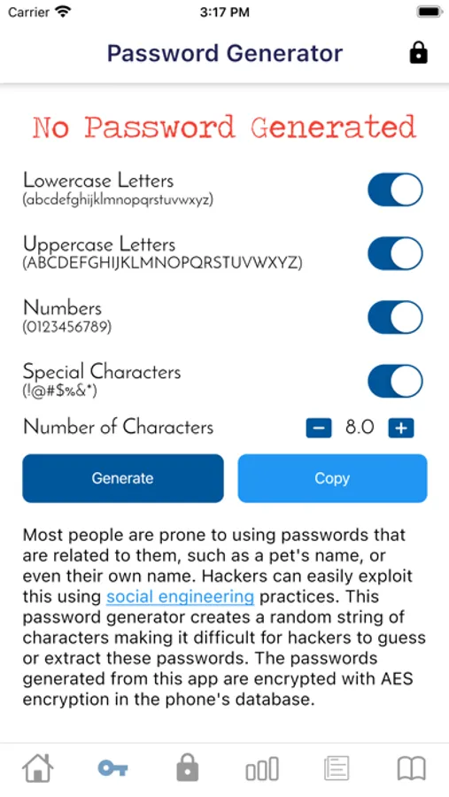 -A password vault stored in the phones local SQLite database secured by AES encryption.