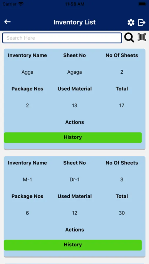 This application has another functionality called stock update to scan multiple products at once and update the information in a sequence. We will be able to view the history of inventory added to this application.