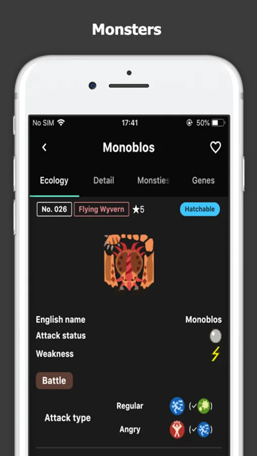 You can check all the game information including Monsties, Genes, Monsters, Weapons, Armors etc.