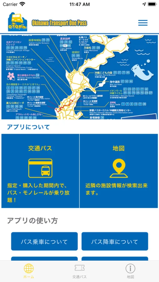 1.期間内であれば、パス購入後、対象本島内路線バス、モノレールが乗り放題