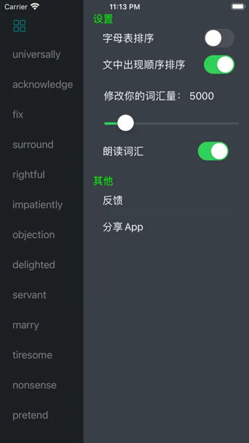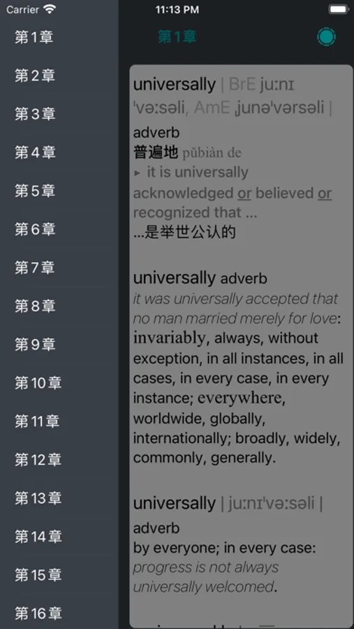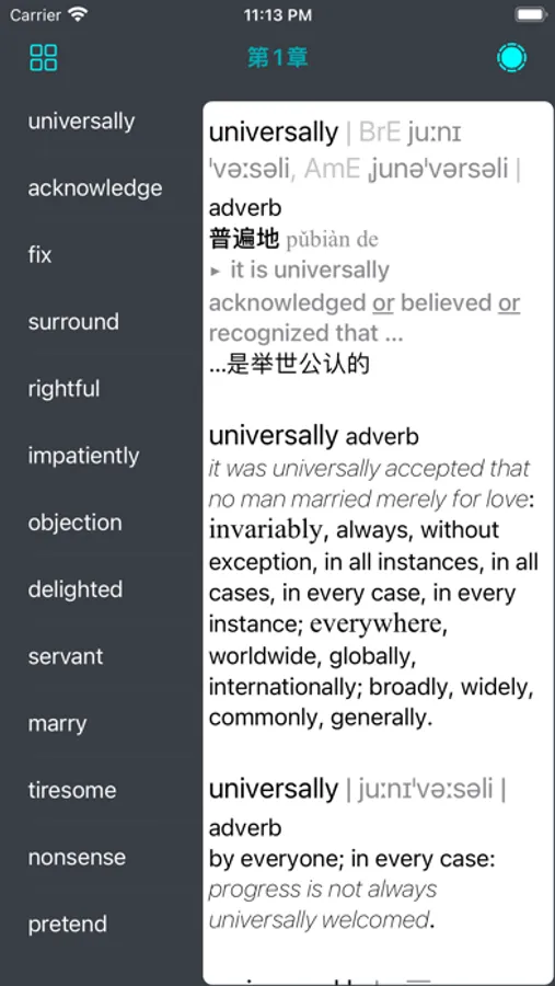 《傲慢与偏见》这部小说的词汇表。集成了字典。可以按照自己的词汇量来过滤单词。单词可按照字母表排序,也可以按照文中出现的顺序排序。