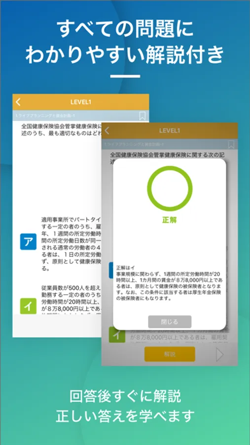 解説も充実し、アプリならではの隙間時間も逃さず効率的に勉強!これで次回試験もバッチリです!