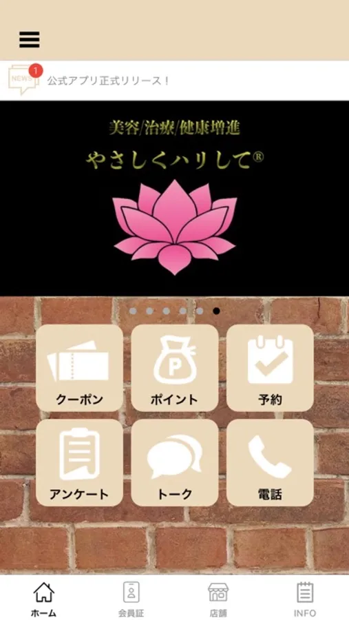 美容、治療、健康増進の3本柱でトータルケアの”やさしくハリして”店舗情報、予約、会員サービス、関連SNS連携、健康美容用品購入などオールインワンで便利に活用できる専用アプリです。