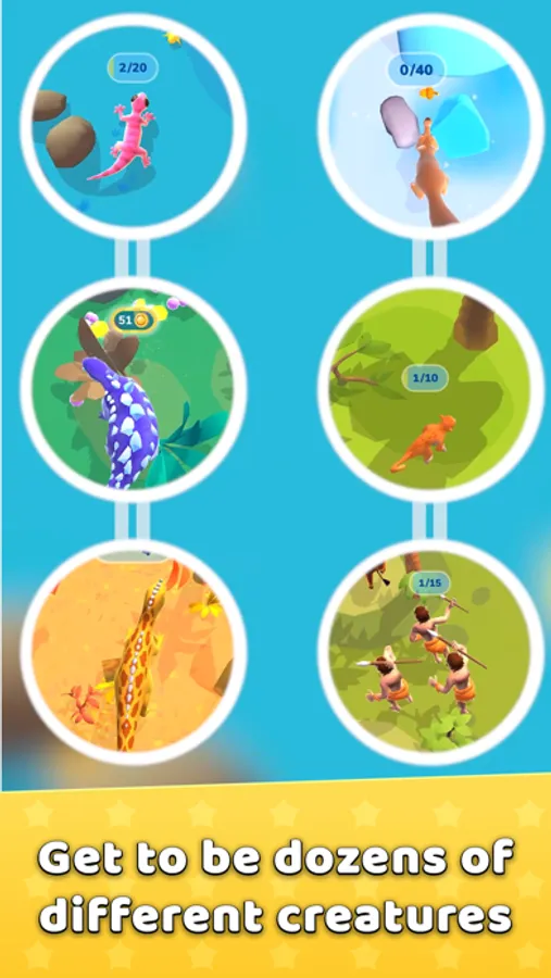 • Complete levels with high scores to unlock exotic evolutionary missteps including mermaids, unicorns, and dragons for even more foraging fun.