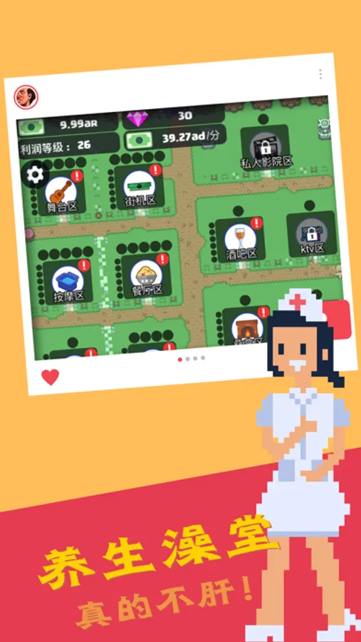 继承了爷爷在圣星谷留下的老旧澡堂,带着爷爷留下的残旧设施和少许古怪的老顾客,你能将这个澡堂变成一个繁荣的洗浴中心吗?