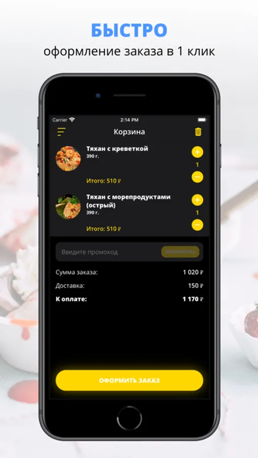 Скачивайте наше приложение, оформляйте заказ и наслаждайтесь любимой едой, где бы Вы ни были! Приятного аппетита!