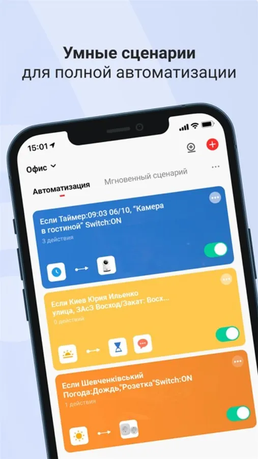 Automate control of your home and office, control a group of devices with one click with smart scenarios.
