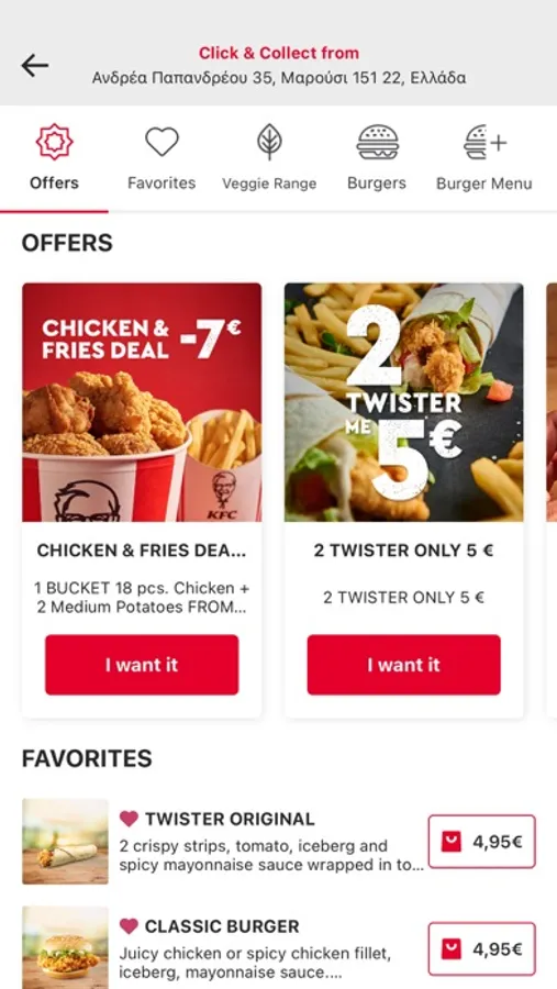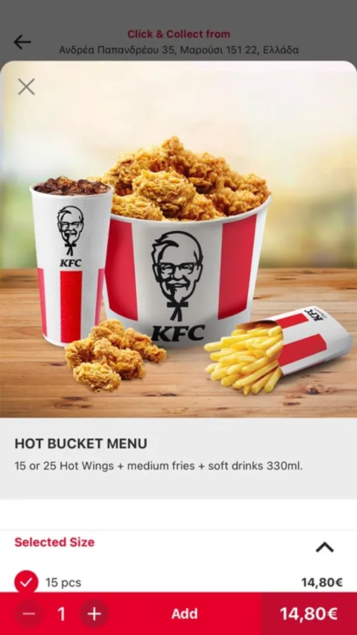 KFC - Online Delivery and Click & Collect App. Download KFC app & enjoy your favourite KFC, fried chicken, unique buckets with whole pieces of chicken and our delicious burgers with the best deals in just few taps. About this app: - Delivery service - Click and collect service - Easy navigation - Exclusive offers Help us get better! Your feedback is valuable to us, please contact us with ideas/bugs/fixes on info@kfc.gr KFC: It's finger lickin' good!