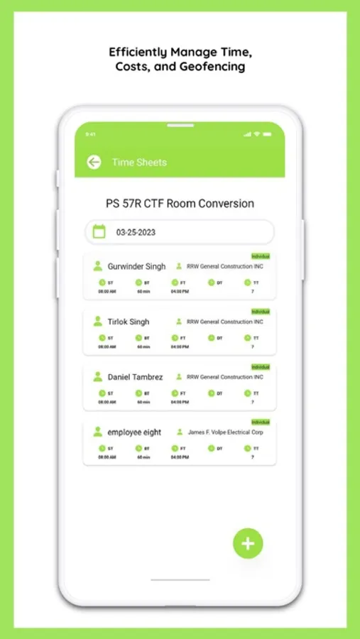 Construction Time Management and Time Sheets with geo-fencing capabilities