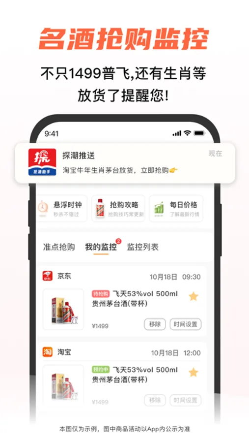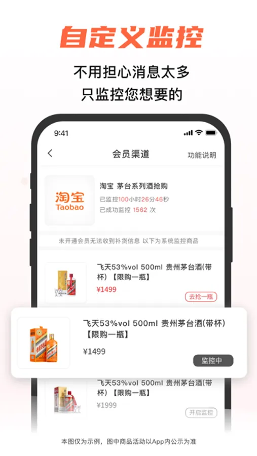 监控提醒:准点抢购、突袭放货提前通知,助您快人一步;