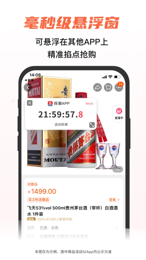悬浮时钟:倒计时秒表悬浮提醒,毫秒级卡点下单;