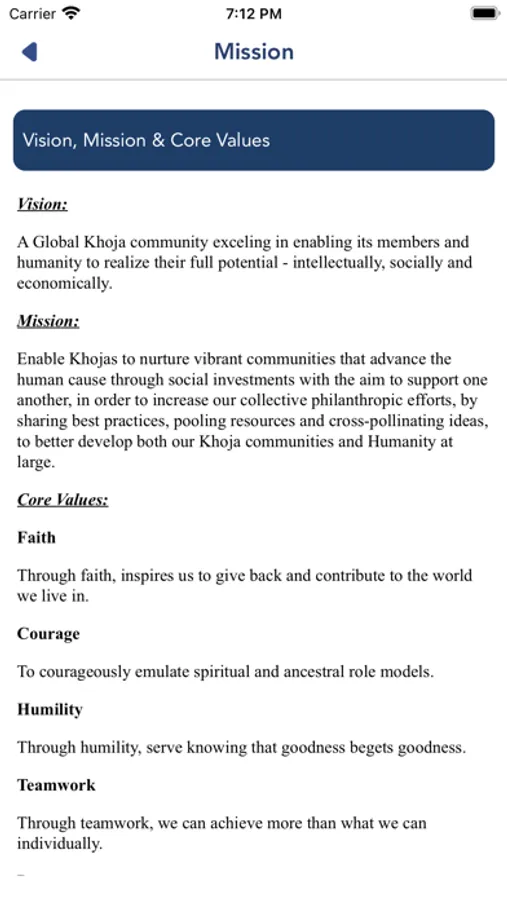 Enable Khojas to nurture vibrant communities that advance the human cause through social investments with the aim to support one another, in order to increase our collective philanthropic efforts, by sharing best practices, pooling resources, and cross-pollinating ideas, to better develop both our Khoja communities and Humanity at large.