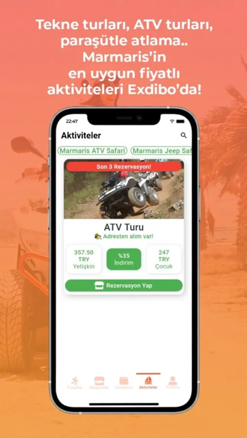 Many activities such as ATV tours, boat tours with the best prices for Exdibo users!
