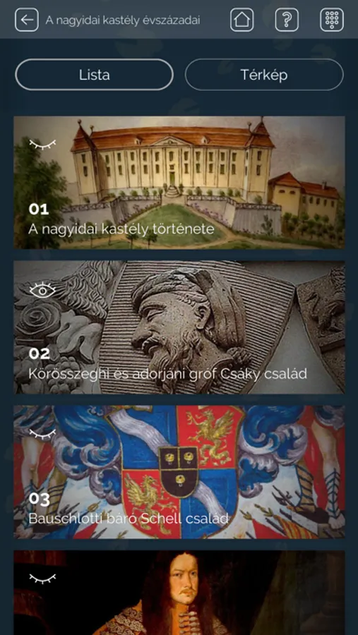 The application guides visitors through the rooms of the exhibition elaborated in the castle where you may discover the history of the castle, the owner families, the manors of the settlement, as well as its literary traditions. You will be able to display informative materials and pictures at each info points. You may choose to navigate based on an interactive map or you may select your sphere of interest in List View.