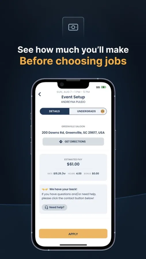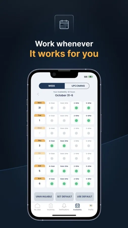 Select the hours you want to work and pick up available jobs that fit your schedule - all within the app. You can work as little or as much as you want.