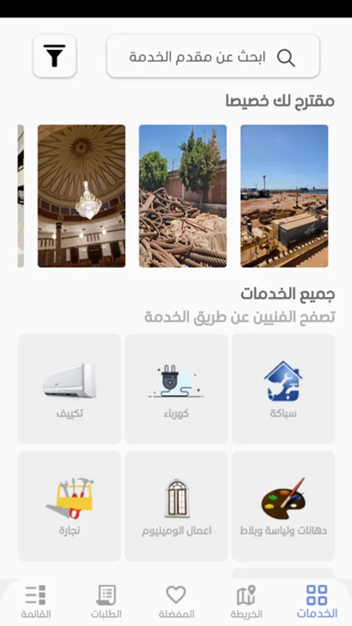 * يمكنك التطبيق من التواصل مع الفنيين على حسب الخدمة المطلوبة