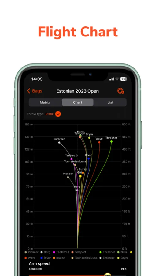 - Flight charts that will give you a little insight how disc flight depends on your arm speed.
