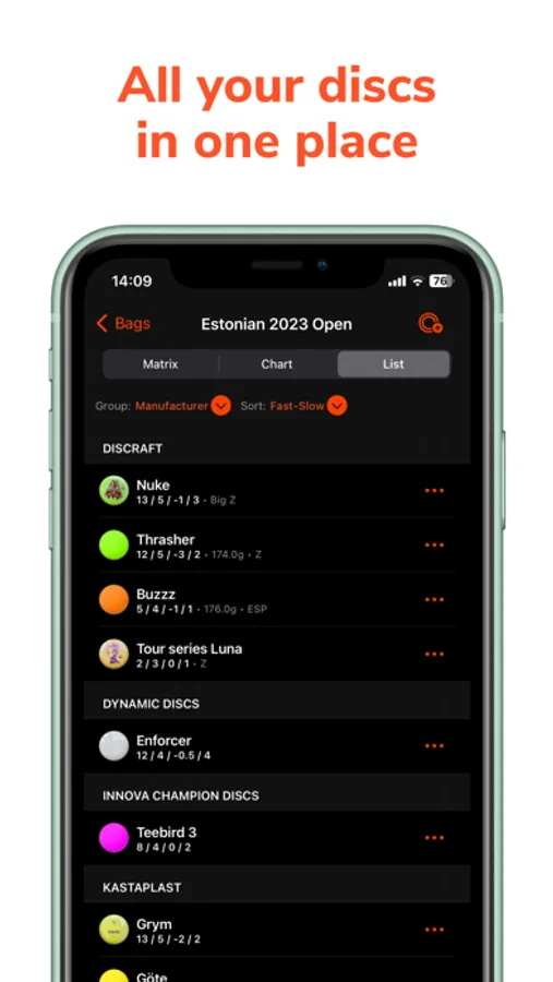 - You can hide/show discs on the Flight Chart and Flight Matrix screen