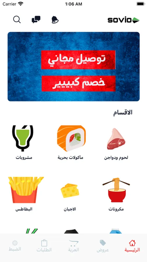 تقوم شركة سوفيو بتوفير جميع احتياجات الكافيهات والمطاعم والفنادق خدمة وتوريد الخامات الاساسية و المتطلبات اليومية من طعام ومشروبات بجميع انواعها يوفر لك التطبيق سهولة الاستخدام في الطلب من مكان واحد ومن افضل موردين وبخصم افضل وخدمة توصيل اسرع