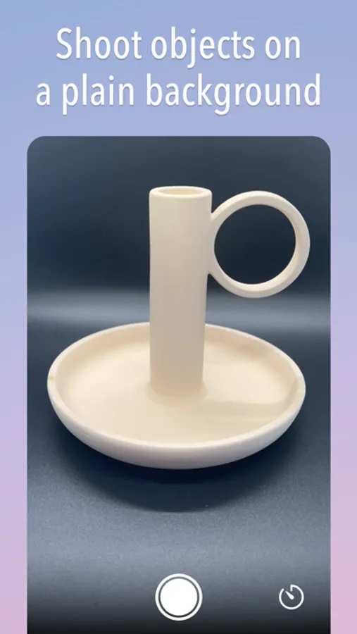 Place your object on neutral plain background and take 30-200 photos using Modelified app