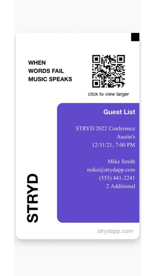 The STRYD Staff app is intended to be used by employees of participating live event venues. This app enables venue employees to view and update guest statuses.