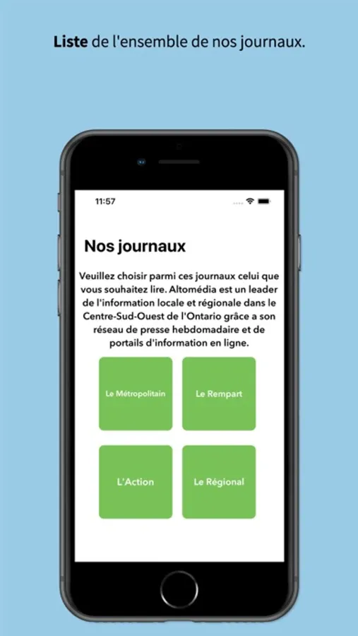 "Altomédia est un leader de l’information locale et régionale dans le Centre-Sud-Ouest de l’Ontario grâce à son réseau de presse hebdomadaire et de portails d’information en ligne. AltoMédia est propriétaire des journaux Le Métropolitain de Toronto, Le Régional de Hamilton-Niagara, L’Action de London-Sarnia, Woodstock-Owen Sound, Le Rempart de Windsor-Essex, Chatham-Kent et de Bonjour Ontario."