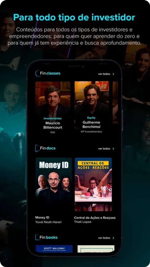SÉRIES: Nas séries você pode encontrar documentários e séries especiais, como o documentário Money ID, onde foram entrevistados grandes autoridades mundiais, como o ganhador do Prêmio Nobel da Paz, Muhammed Yunus, para analisar a história do dinheiro e a evolução ao longo do tempo, como também séries como o desafio primeiros passos, que te ensina tudo o que você precisa saber para dar o primeiro passo no mundo dos investimentos.