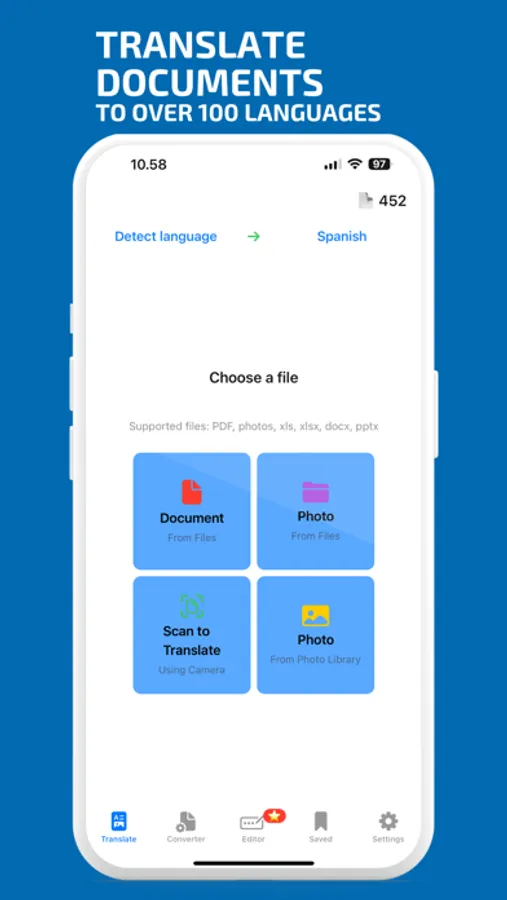 Introducing the ultimate PDF Translator & Editor: Instantly translate and edit PDFs and more in a few taps!