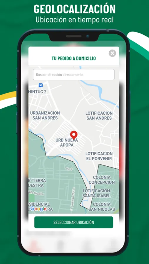 Selecciona tu ubicación en tiempo real en el mapa, para que podamos entregarte tu pizza lo más rápido posible.
