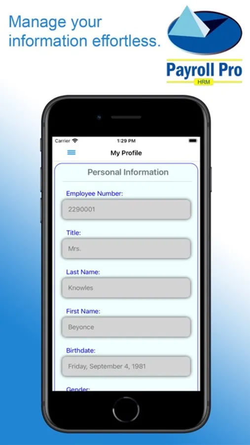 The Payroll Pro HRM App is an app to access the personal Human Resource and Payroll information of the user.